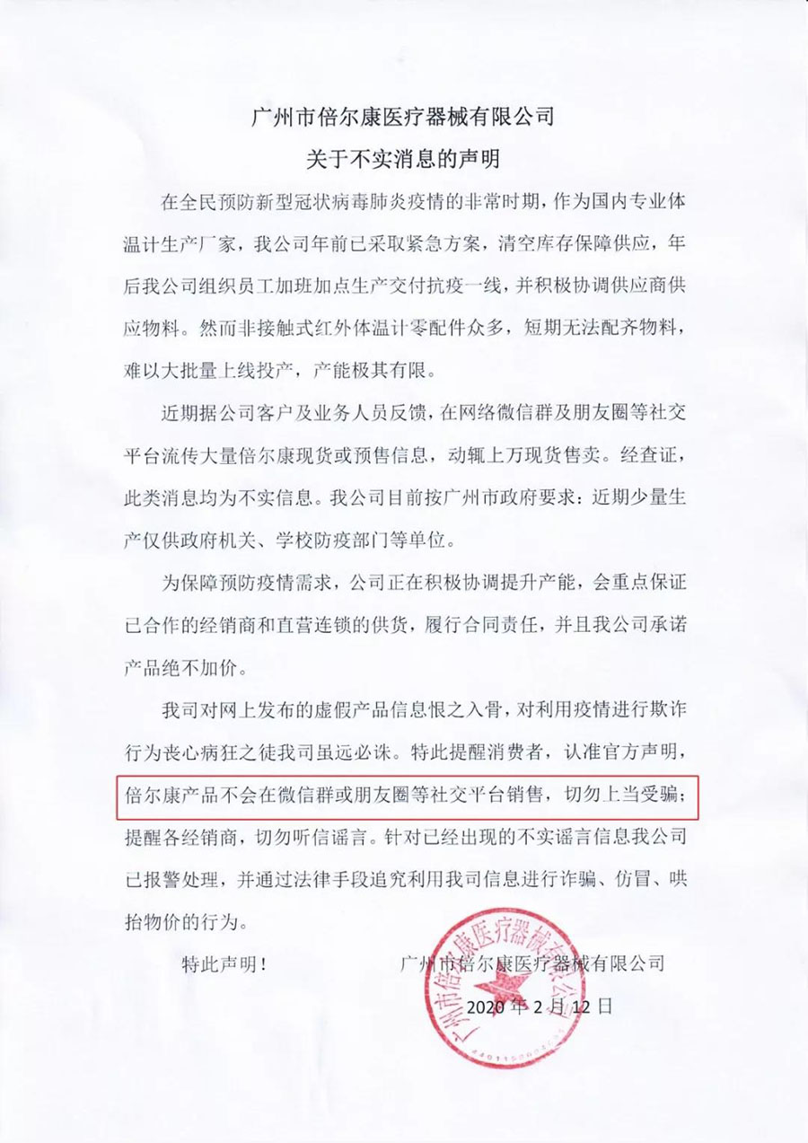 倍爾康鄭重聲明:倍爾康產(chǎn)品不會(huì)在微信群或朋友圈等社交平臺(tái)進(jìn)行銷售!