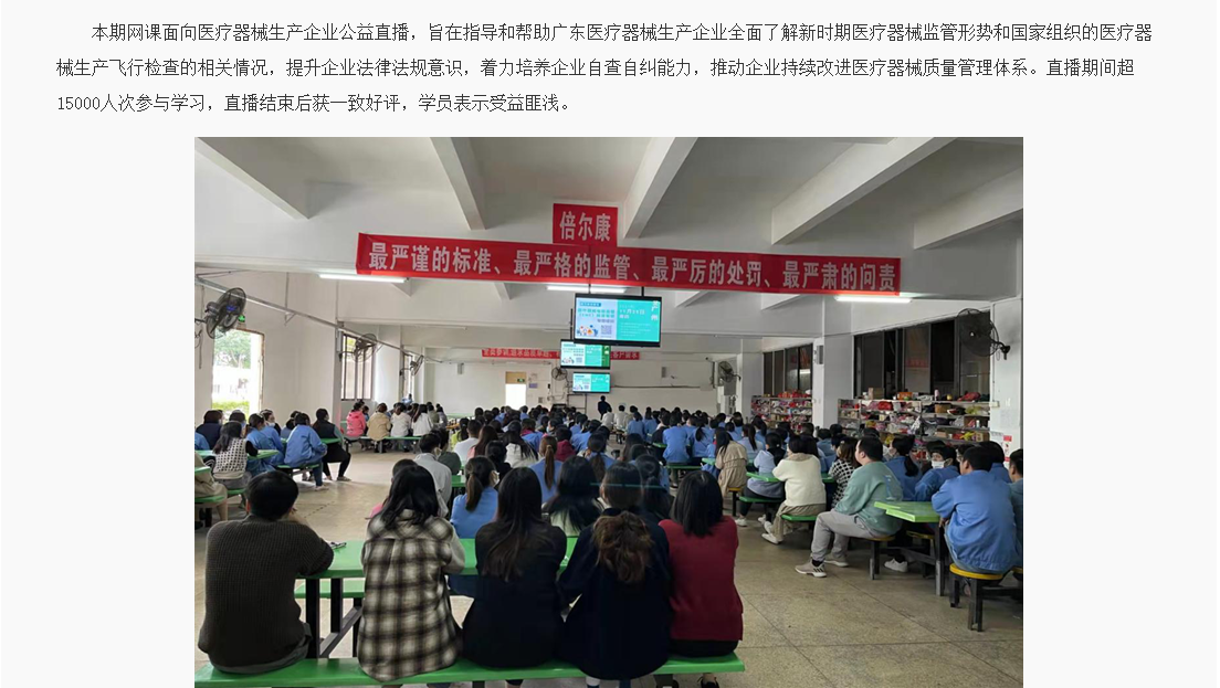 倍爾康組織全體員工一起觀看了這場(chǎng)直播課,此次直播課的主題為“從國家飛行檢查發(fā)現(xiàn)質(zhì)量管理體系中存在共性問題的分析”,通過直播課的學(xué)習(xí),倍爾康人學(xué)到了以下重要的三點(diǎn):