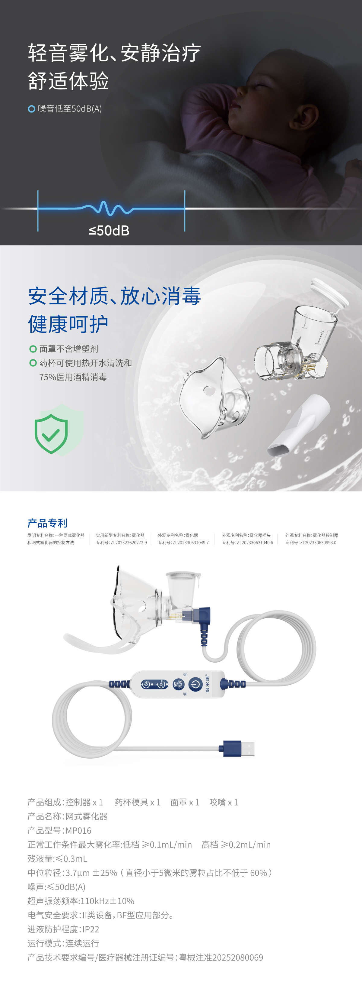 霧化速率:低檔≥0.1ml/min 高檔≥0.2 ml/min