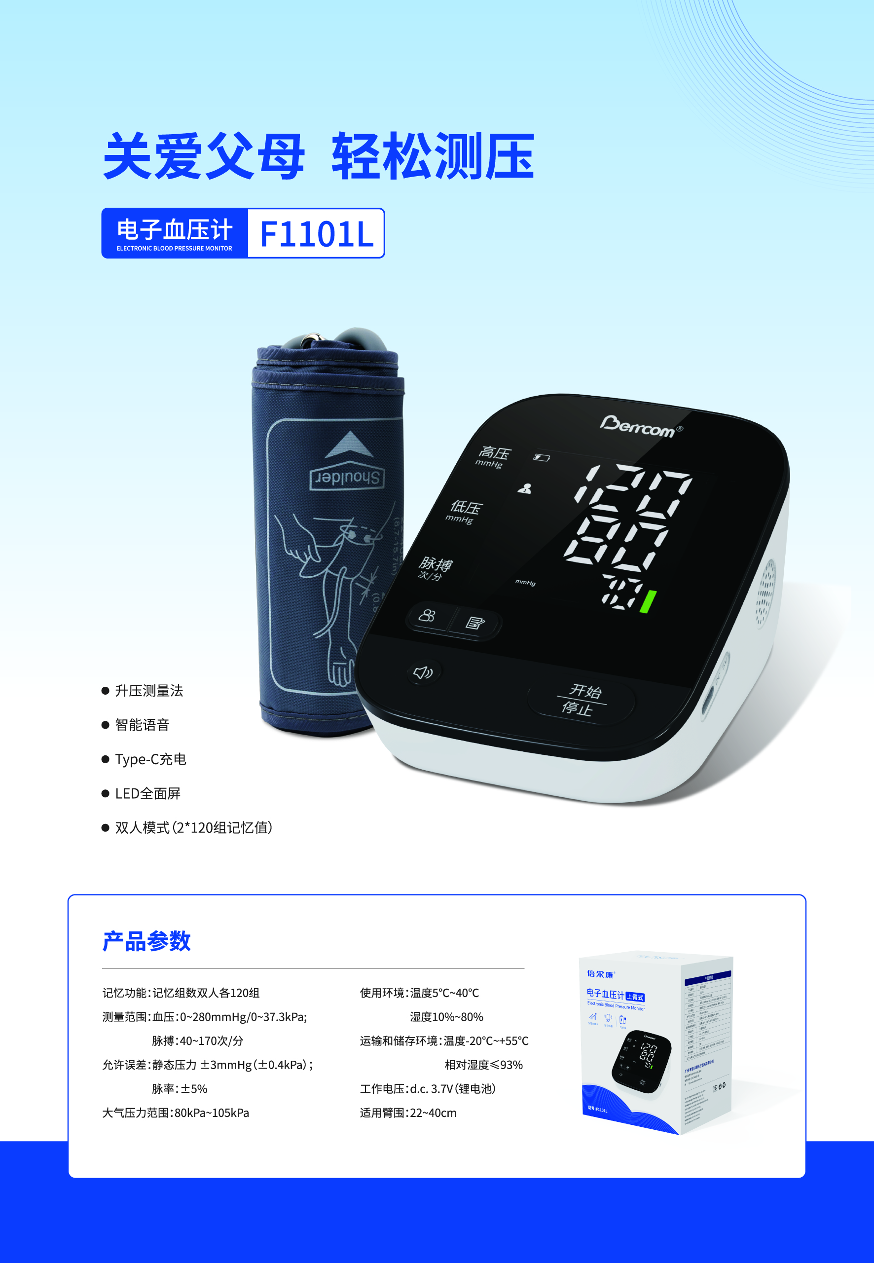 上臂式電子血壓計 F1101L