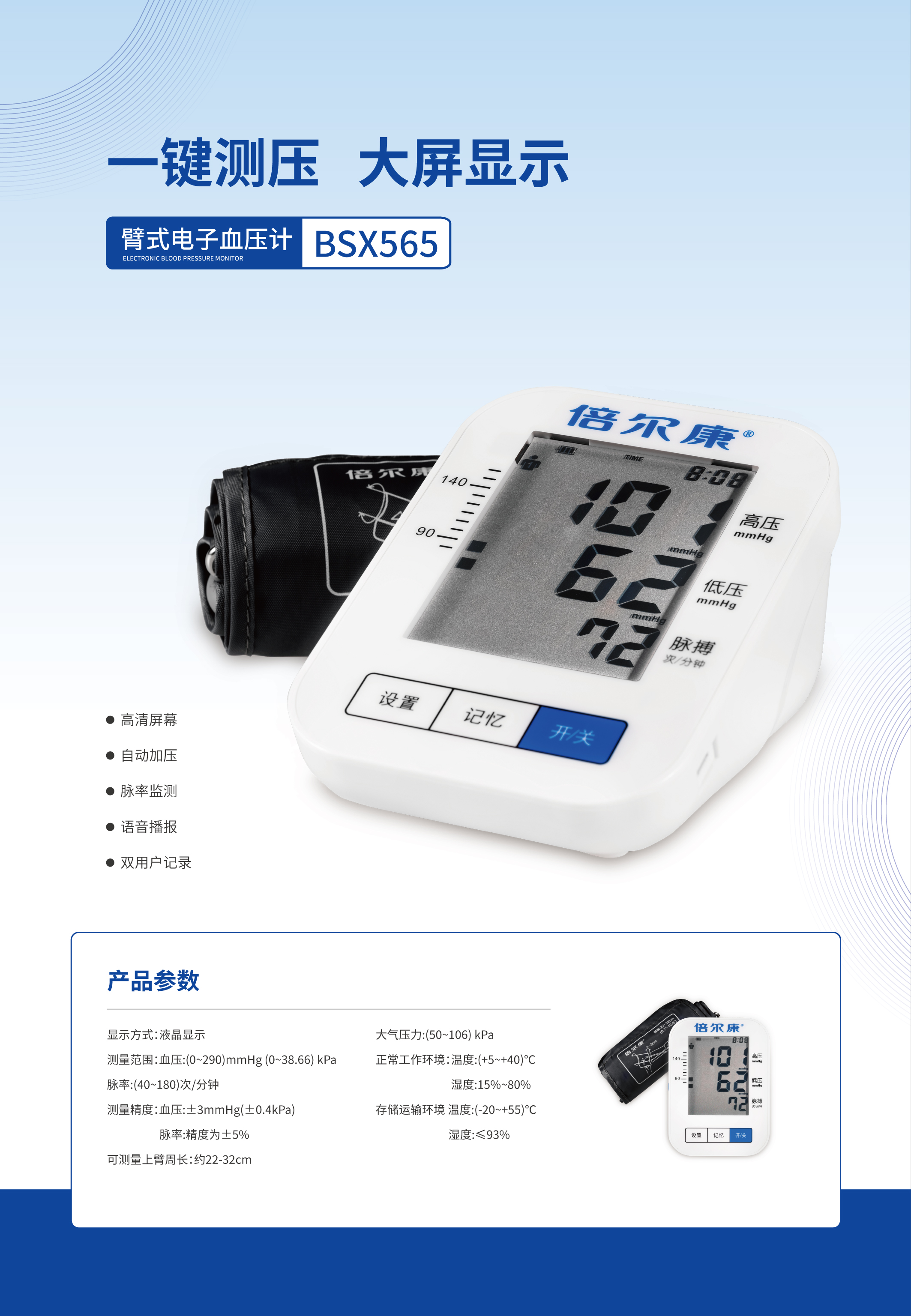 臂式電子血壓計(jì) BSX565